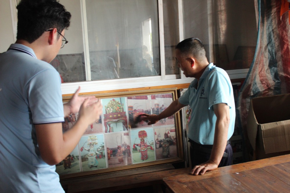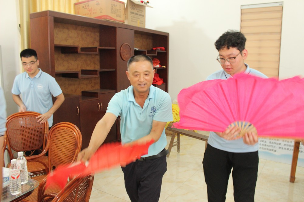 采訪中,周館長熱情地向實踐團成員回溯五猖戲的歷史脈絡,講述自己與五猖戲相伴的歲月,每當提起這些,他眼角眉梢滿是笑意,自豪之情溢于言表。作為五猖戲第一人,周館長扮演了數十年“和尚”,哪怕已經是退休的年紀,也仍扎根五猖戲傳承第一線。在現場,周館長還示范起五猖戲中“和尚”角色的動作:看似簡單的輕移金步、翻飛扇影,實際操作起來卻暗藏玄機,難以把控。團隊成員親身體驗后方知,所謂“臺上一分鐘,臺下十年功”,正是對這份技藝的生動詮釋。