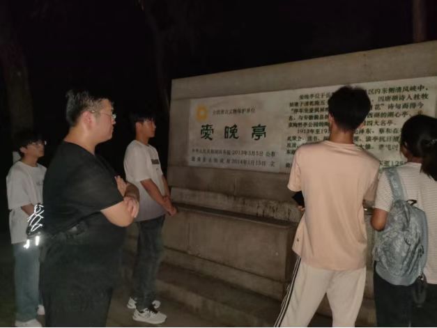 實踐隊成員認真閱讀關于“愛晚亭”的知識參觀過程中,師生們認真閱讀、交流感悟。明白了在實地觸摸歷史痕跡,才真切懂得先輩們的不易,紅色精神不是書本上的文字,而是要我們傳承踐行的力量 。老師也寄語同學們,要從紅色景點中汲取養分,將愛國情、奮斗志融入青春征程。