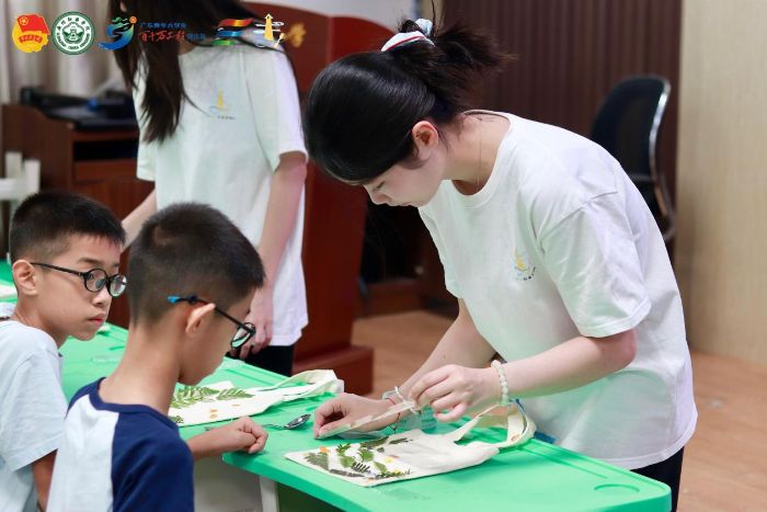 2025 年 7 月 13 日,在汕頭市南澳縣后宅鎮(zhèn)中心小學(xué)的教室里,一場別開生面的課程正如火如荼地進行著。廣州新華學(xué)院 “藝路向汕突擊隊” 的志愿者老師們,為五年級的孩子們帶來了一場充滿趣味與文化內(nèi)涵的植物拓印課程。在番茄老師與云吞老師的帶領(lǐng)下,孩子們通過非遺技藝與自然元素的融合,開啟了一場沉浸式的美育實踐之旅。