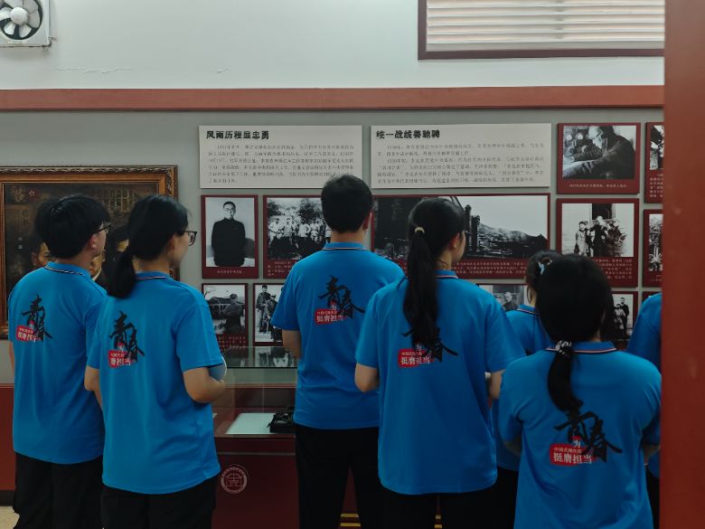 實踐團首站踏入巢湖市烔煬鎮的李克農故居。夏日的陽光穿過庭院古樹,斑駁光影灑在青磚之上,仿佛為將軍的舊居披上了一層莊重的金紗。在生平事跡展陳區,泛黃的書信在玻璃展柜下靜臥,無聲傳遞著烽火歲月中重于泰山的使命;洗得發白的舊軍裝,針腳細密卻難掩磨損,默默訴說著主人克己奉公的畢生堅守;那些質樸到近乎簡陋的生活器具,無聲地還原了這位隱蔽戰線傳奇人物信仰支撐下的日常。