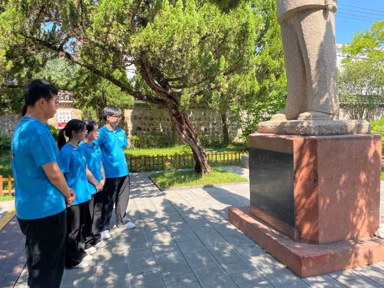 故居后院濃蔭匝地,實踐團成員圍坐交流,深入了解這方小小天地作為愛國主義教育基地,如何通過精心設計的主題展覽、互動活動,持續弘揚將軍愛國愛民的情懷與廉潔奉公的本色。成員們結合三日所見所聞與研讀資料,圍繞“將軍廉潔風范何以形成”及“對當代廉潔教育的深刻啟示”展開了熱烈研討。活動尾聲,全體成員肅立于故居前合影,身后是將軍簡樸的舊居,眼前是新時代的青年臉龐。實踐團成員在返程車上分享道:“那些磨損的桌角、帶補丁的軍衣,比任何教科書都更有力量。馮將軍的愛國、愛民、廉潔,不再是抽象的概念,而是帶著體溫和質感的真實存在。”