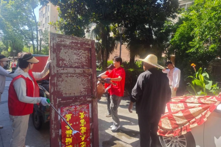 圖為實踐團隊開展線下調研并協助社區清掃衛生。曾悅 供圖
