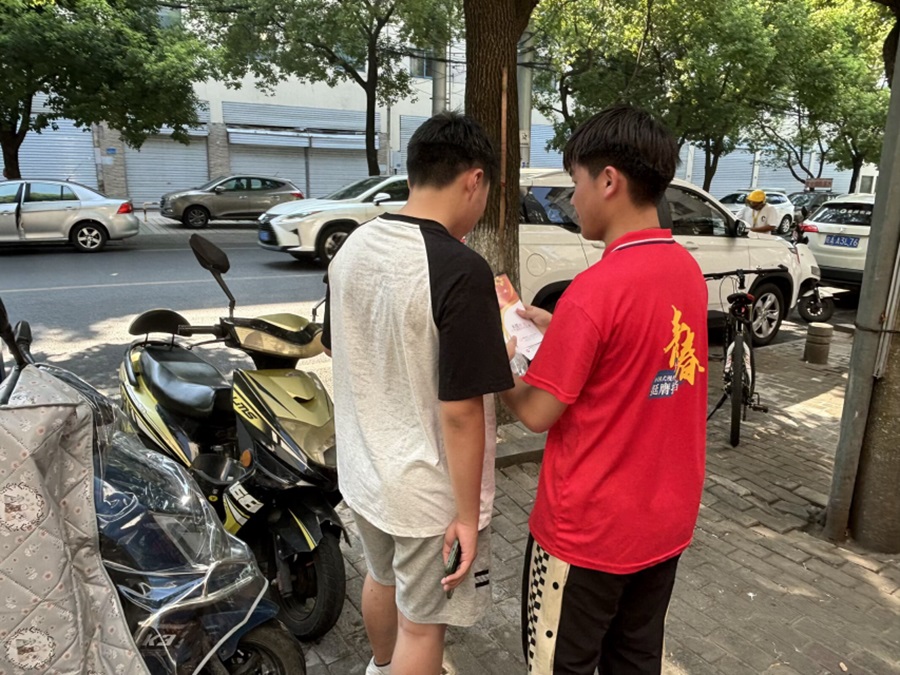 圖為實踐團隊走進草城街發放獻血宣傳單。王詩穎 供圖