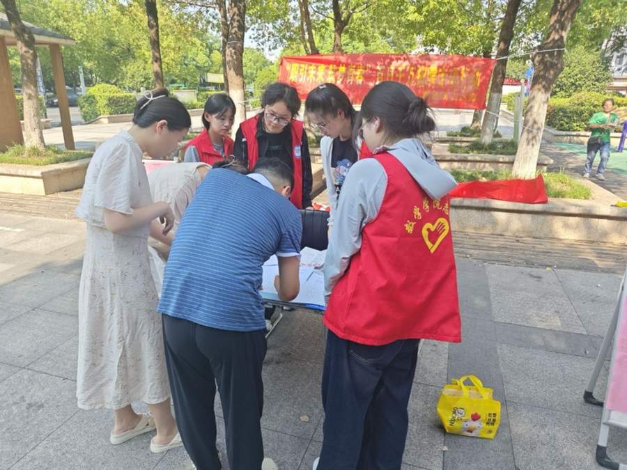 中國青年網7月11日電(通訊員 周雨玥 陳路瑤)習近平總書記指出:“紅十字不僅是一種精神,更是一面旗幟,跨越國界、種族、信仰,引領著世界范圍內的人道主義活動。”無償獻血,恰是“愛人者,人恒愛之”的精神踐行,亦合“臨危而授命,豈不偉哉”的大義擔當。為進一步提升巢湖市居民對獻血意義的認知,普及獻血衛生知識,2025年6月30日至7月6日,巢湖學院數學與大數據學院赴巢湖鄉鎮“獻血賦能・健康調研”宣傳團,在指導老師的帶領下,前往巢湖市多個社區開展暑期社會實踐活動。宣傳團成員們通過發放獻血宣傳手冊和填寫線下問卷,向居民詳細講解獻血對身體的積極影響,糾正大眾對獻血的誤解,以專業且耐心的態度,為居民們解開心中疑惑,全力推動當地無償獻血知識的普及,助力營造互助友愛的社會氛圍 。