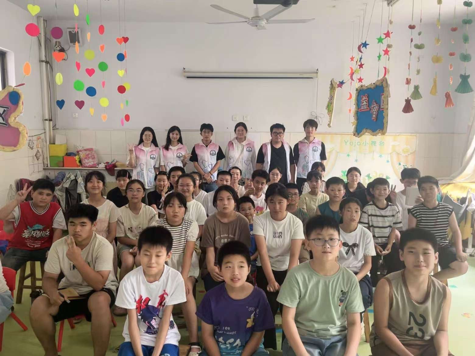 圖為山東管理學院筑夢人志愿團隊與孩子們的合照。 牟志璇 供圖