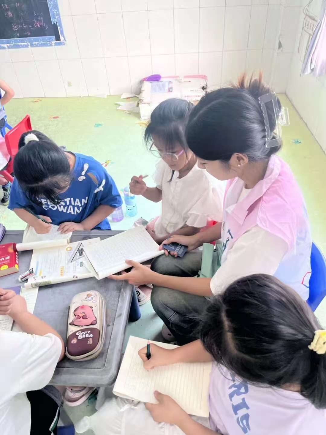 圖為志愿者輔導孩子們課業。 牟志璇 供圖