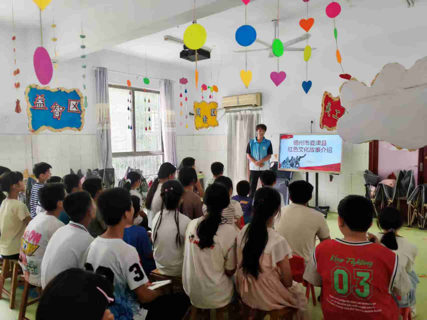 圖為志愿者為孩子們講解夏津縣當地紅色文化故事。 牟志璇 供圖