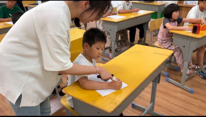 上午9點,活動在歡快的“擊鼓傳花”游戲中拉開序幕。一包由手帕紙精心制成的“花球”,在孩子們純真的小手中輕盈傳遞,宛如傳遞著友誼與希望的使者。隨著音樂的驟然暫停,一名扎著俏皮羊角辮的女孩緊緊握著“花球”,臉頰泛起羞澀的紅暈,卻勇敢地唱響了《孤勇者》。那稚嫩而堅定的歌聲,瞬間贏得了全場熱烈的掌聲,仿佛是夏日里最清涼的微風,吹散了孩子們心中的拘謹與不安。緊接著,“表情包猜成語”環節將氣氛推向了高潮。屏幕上,“手舞足蹈”“聞雞起舞”等生動有趣的表情包輪番登場,宛如一場視覺的盛宴。孩子們爭先恐后地搶答,眼中閃爍著好奇與興奮的光芒,展現出敏銳的觀察力和團隊協作的熱情。一名戴眼鏡的男孩更是反應迅速,一眼便猜出了“驚弓之鳥”,引得全場歡笑連連,仿佛整個空間都充滿了快樂的氣息。這場融合了現代元素的語文啟蒙游戲,不僅巧妙地消解了孩子們之間的陌生感,更讓志愿者們迅速識別出了孩子們的年齡差異和性格特點,為后續的互動奠定了堅實的基礎。