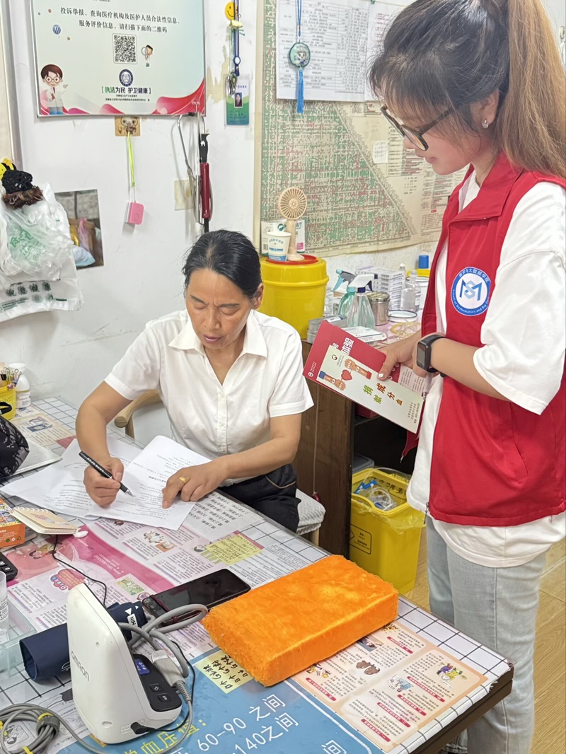 7月4日,團隊來到居民診所,志愿者們帶著問卷和印有獻血知識的宣傳手冊開展活動。有居民對著問卷上“獻血后是否需要大補”的問題犯愁,團隊成員笑著舉例:“就像平時運動后補充水分和營養一樣,獻血后正常飲食就能恢復,不用特意‘大補’呢。醫護人員也加入進來,和志愿者們你一言我一語地聊起居民常問的“獻血會不會傳染疾病”等問題,團隊成員結合消毒流程和醫學規范詳細解答,原本安靜的角落漸漸熱鬧起來,不少候診的居民也湊過來聽,偶爾插問幾句,在輕松的交流中加深了對無償獻血的了解。