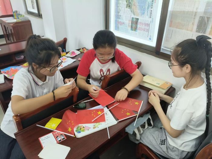 “赤旗耀朝陽(yáng),童心向祖國(guó)。”思想引領(lǐng)課堂上,實(shí)踐團(tuán)成員以國(guó)旗為引,以熱愛為墨,帶領(lǐng)孩子們回溯國(guó)旗誕生歷程,探尋五角星與紅色旗面的意義。手工制作小紅旗時(shí),孩子們認(rèn)真裁剪、粘貼,這不僅是彩紙與竹筷的組合,更是對(duì)“國(guó)旗是祖國(guó)象征”的深刻領(lǐng)悟。從認(rèn)識(shí)國(guó)旗知識(shí),到承諾守護(hù)國(guó)旗,“護(hù)旗愛旗,銘記使命”的種子悄然播撒,讓愛國(guó)情在童真眼眸里閃光,國(guó)旗映夢(mèng),信仰火種燃童心!