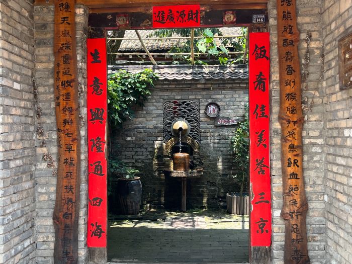 除主體建筑外,隊員們也格外關注那些蘊含于細節中的營造智慧。木窗的格紋樣式豐富多變,有的仿梅枝,有的似回紋,既保證了通風采光的基本功能,又暗含吉祥寓意;大門上方的門簪造型精巧,常雕刻著花卉、瑞獸等紋樣,是屋主身份與審美情趣的體現。古寨在造景手法上的巧思更令隊員們贊嘆不已:廢棄的老石磨盤被串聯起來用作橋欄桿,既盤活了舊物,又透出濃厚的農耕文化底蘊;瓦片被錯落有致地排列成景觀墻,陽光照射下形成斑駁的光影效果;古樹樹干被匠心獨運地改造成樓板的支撐柱,既保留了樹木的生命印記,又使建筑與自然環境渾然一體。