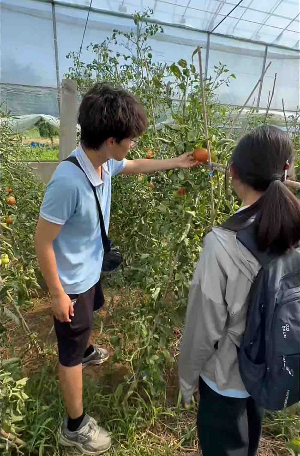 春田里休閑農場占地約300畝,近年來發展態勢良好,憑借有機種植與多元經營模式,不僅在果蔬種植上形成規模,更融合休閑觀光、親子體驗、科普教育等功能,成為當地農旅融合發展的典型代表,既吸引了大量游客前來體驗,也帶動了周邊鄉村經濟發展。實踐隊聚焦農場特色西紅柿產業的發展成果,專程前來開展調研,為深挖產業價值、助力鄉村振興積累第一手資料。