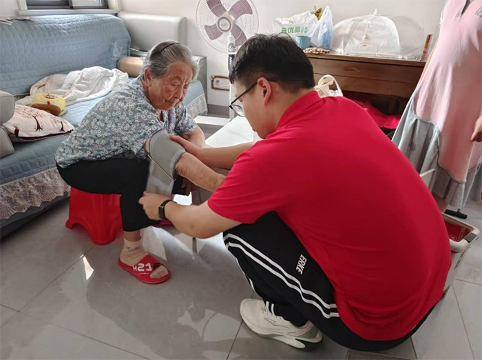 健康巡檢居家暖心 與此同時,團隊成員們逐戶上門開展健康檢測、水電安全排查及衛生清掃服務。他們細致入微地記錄每一位居民的血壓、血糖數據,檢修線路管道,清理家居衛生死角,用專業服務傳遞溫暖,守護居民的生活安康。