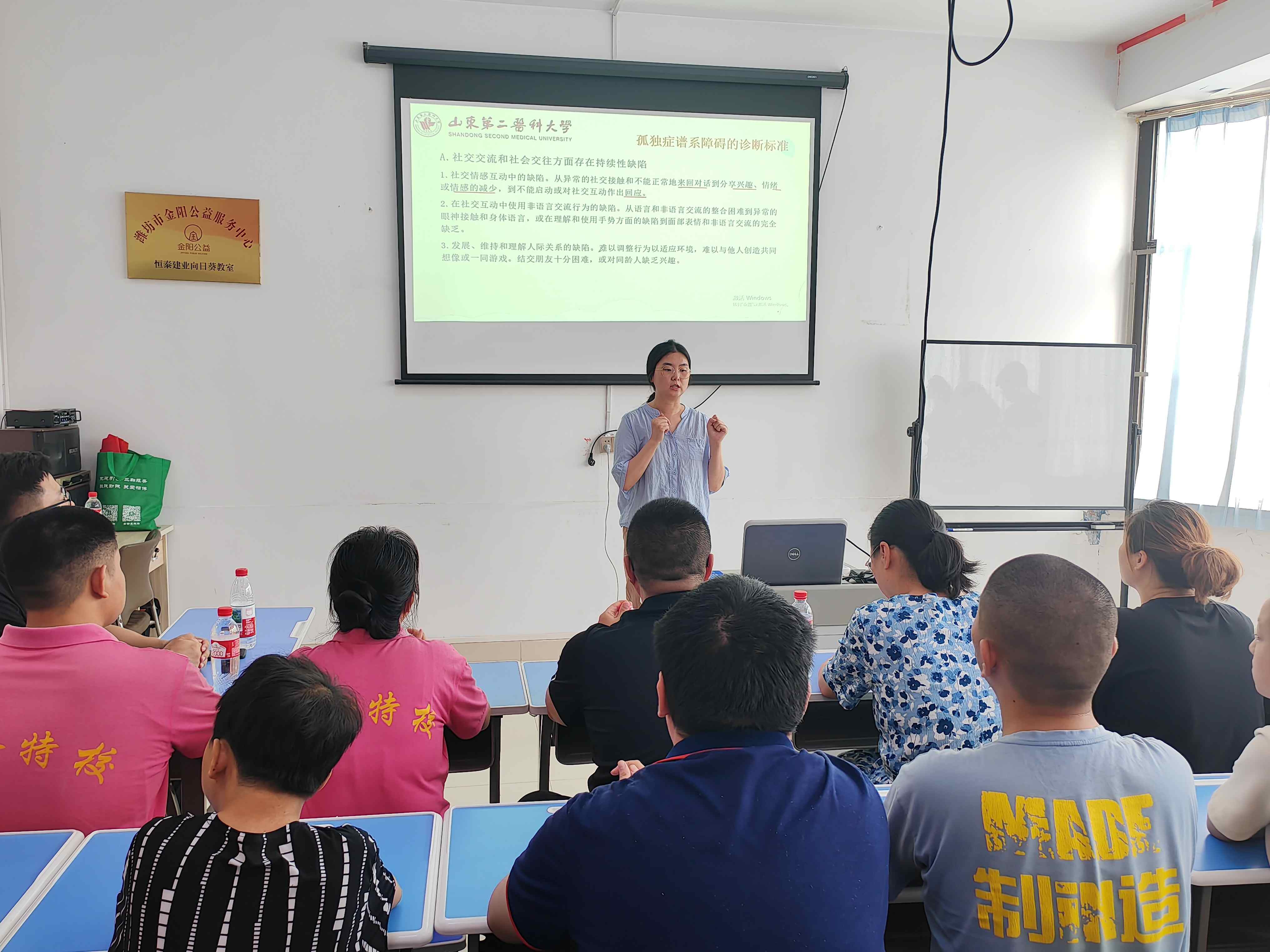 在安丘市愛倫特殊教育學校,康復醫學院作業治療專業教師段丹博士面向學校教師和家長開展康復知識宣講,內容涵蓋特殊兒童康復的關鍵期、常見訓練誤區、學校與家庭協同康復教育的要點等,幫助學校教師將專業康復教育理念融入日常教學,提升學?祻徒逃n程的專業性。服務隊成員深入康復訓練室、輔助性就業室及兒童生活區域,與學校工作人員圍繞特殊兒童康復訓練、教育干預、生活照料等核心議題進行了深入研討與交流,為特殊兒童進行了詳細的康復評估,并為家長提供了實用的家庭康復指導與科學知識科普,有效促進了科學康復觀念的普及。在訓練室,師生們通過電腦輔助認知訓練、錢幣識別、系扣子練習、一起制作風箏藝術品等活動,幫助特殊兒童提升生活技能。