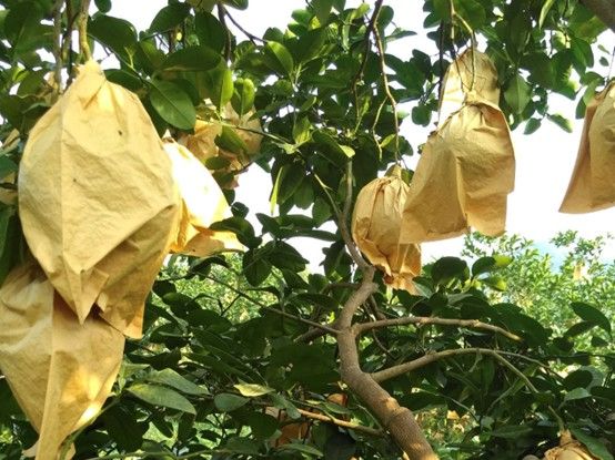 二、玉林沙田柚物理套袋減少農藥使用“農品新生“調研團隊調研首站步入廣西農科院沙田柚智慧種植示范基地,團隊成員親身體驗農業科技的魅力,連片的沙田柚樹套著黃色的袋子讓隊員們充滿好奇,隨著種植基地負責人的腳步,調研隊來到了沙田柚樹下,隊長黃詩怡向負責人問道:“為何沙田柚都用黃色的袋子包裹住?這樣做有什么作用嗎?”種植基地負責人耐心詳細地回答套上黃色的袋子主要有四個用處,第一可以減少農藥污染,能有效阻隔農藥與果實直接接觸,降低果實表面的農藥殘留。第二改善外觀品質可以避免外界物質對果實的表面機械損傷,減少病蟲害叮咬。第三提高果品質量,可以減少果實受外界不良氣候的影響,降低裂果率,還能適當調節袋內溫度和濕度,利于果實糖分積累提高品質。第四可以降低成本,比如減少因病蟲害,機械損壞等導致的落果,提高果實的完好率和產量,從而在一定程度上降低了生產過程中的損失,間接降低了生產成本。聽完負責人的講解,隊員宋靜靜感嘆道:“原來小小的袋子,竟有如此大的作用。”同時其他的隊員也紛紛感嘆并從中學到了很多關于種植沙田柚的知識。