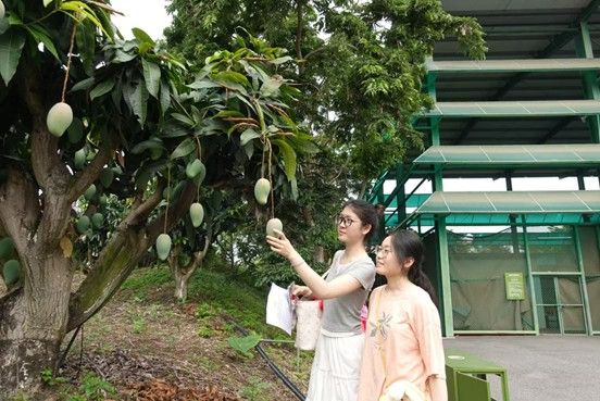 圖為調研成員參觀研究所內的芒果樹 黃詩怡攝