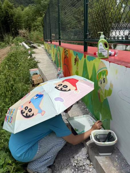 此刻,教室里的讀書聲、墻繪前的笑聲、孩子們追逐的嬉鬧聲,正交織成這個夏天最動聽的旋律。這場仍在繼續的實踐,用青春與熱愛,為鄉村的夏日寫下溫暖的注腳,也讓志愿精神在山水間悄然傳遞。
