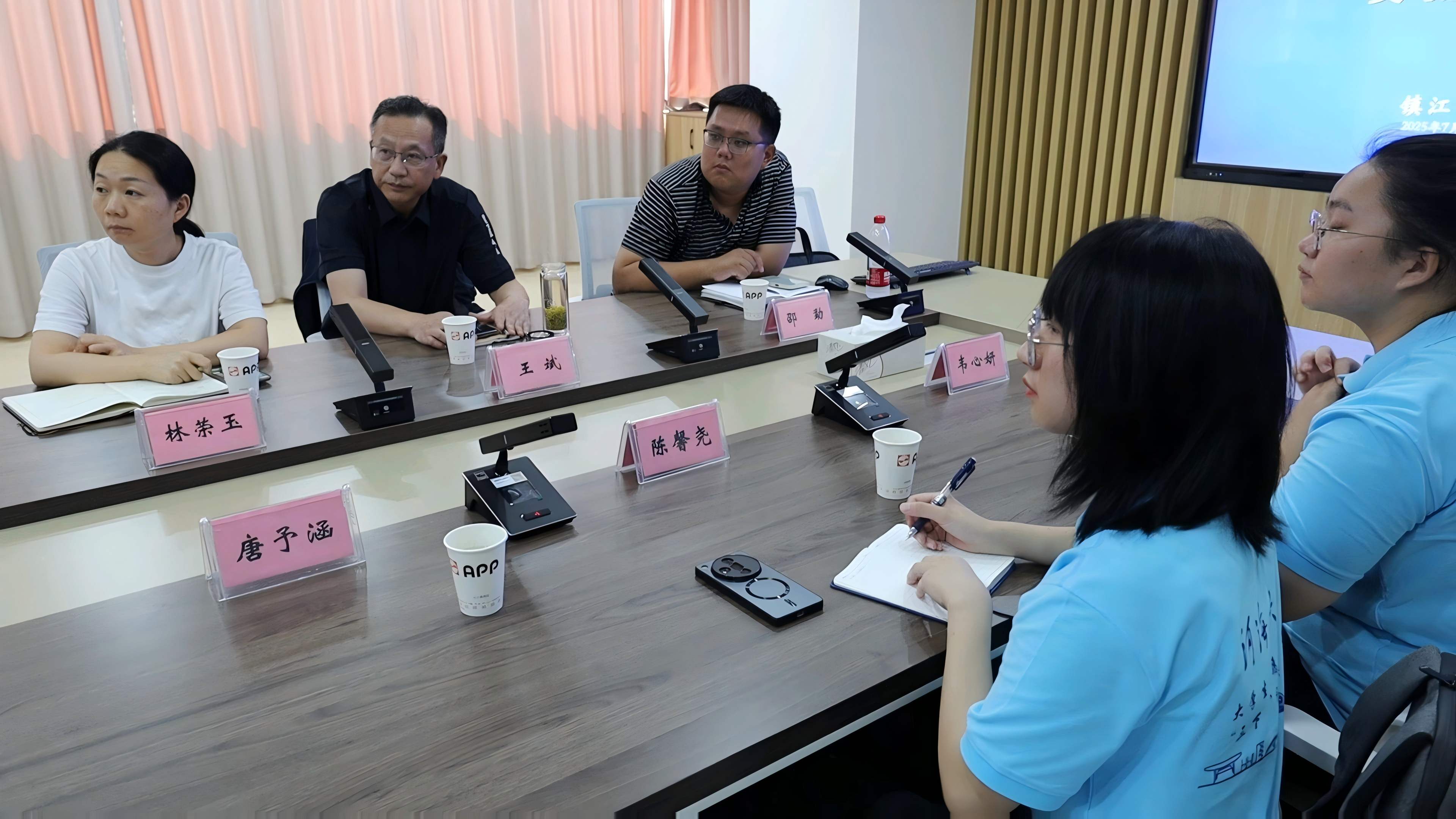 實踐團走訪鎮江市水利局,聯合信息院“溯源鄉水,益踐新程”實踐團,了解其“規劃—建設—管護—執法” 全鏈條管理運行機制的同時,與農水處、河湖長制工作處、公共管理處等部門負責人展開座談會,圍繞河道建設、基礎工程運維、水利規劃等議題進行深入探討,共探水利治理現代化的“鎮江方案”。會上,水政水資源處副處長林榮玉同志向實踐團深入介紹水權交易廢碎改革、水權收儲、水權核算運行機制。實踐團成員還共同探討了水生態產品價值實現模式,共議生態效益核算指標體系、探索“PPP 模式”,聚焦水政建設新方案,共話協同治理新路徑。
