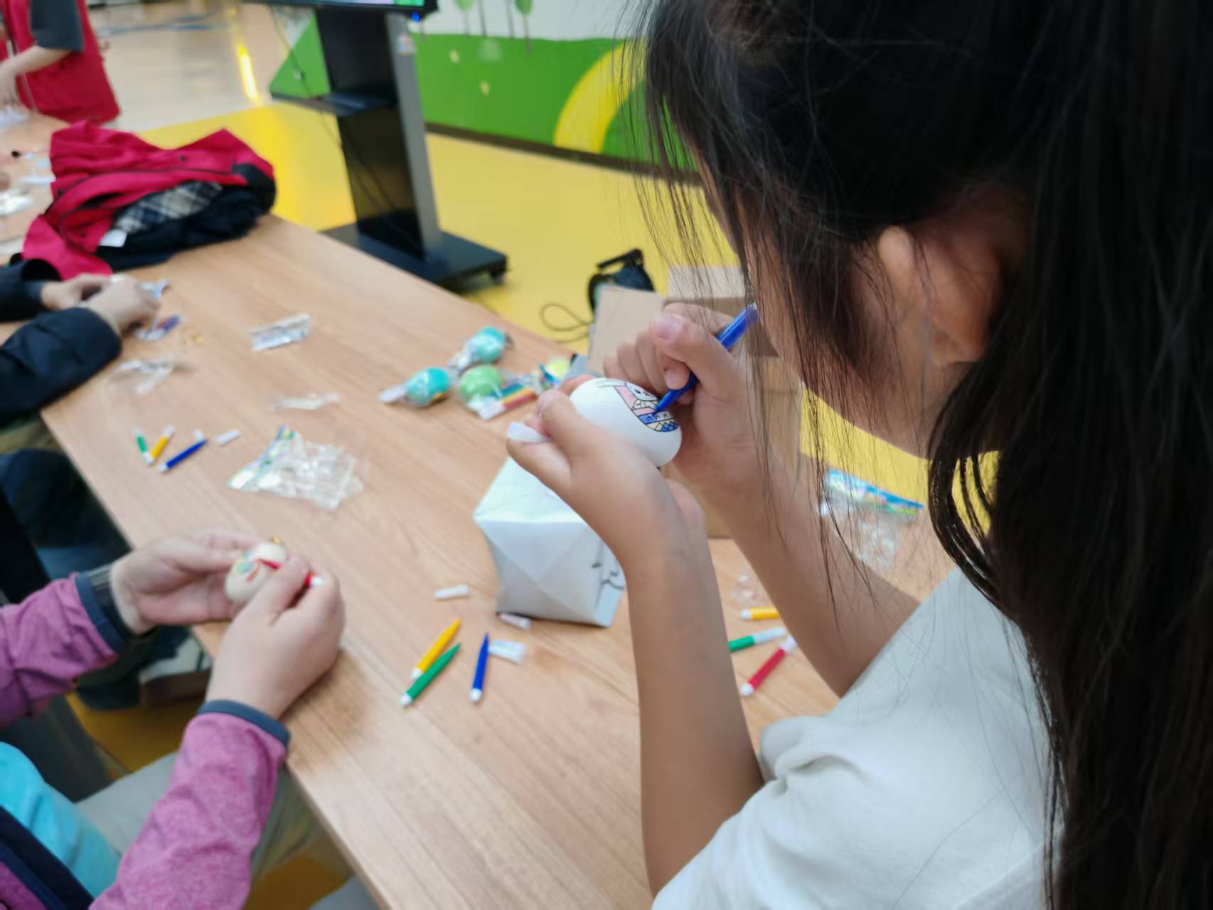 巧手繪彩蛋:創意碰撞傳統元素 “畫彩蛋”活動成為當天最受歡迎的互動環節之一。活動開始前,工作人員精心準備了數十枚環保塑料彩蛋、無毒水性顏料和各式畫筆,并在現場布置了多個創作區域。各個年齡段的參與者都躍躍欲試,迫不及待地領取材料開始創作。創作現場呈現出一派熱鬧景象。一群小學生圍坐在一起,用明快的色彩繪制著充滿童趣的作品。10歲的小男孩畫了一個戴著太陽鏡的"潮酷粽子",還給它配上了滑板;他的同桌則創作了一組“粽子家族”,每個粽子都表情各異,憨態可掬。這些充滿想象力的作品,讓傳統元素煥發出新的活力。