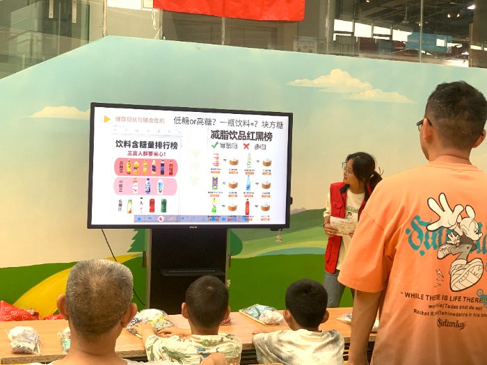 場景搭建:讓科普“活”起來 活動籌備階段,團隊成員花足了心思。考慮到6-12歲兒童是主要參與者之一,PPT制作組特意將專業知識轉化為“可視化語言”:用卡通形象標注蔬菜水果的新鮮特征,用對比動畫展示肉類變質前后的微觀變化,用簡筆畫串聯起高鹽飲食對血管的危害。現場還擺放了立體膳食寶塔模型,每層都貼著對應食物的實物圖片,伸手就能觸摸到的“谷薯類”“蔬果類”分區,讓抽象