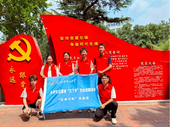 學習接近尾聲,“紅帆引航” 實踐團成員在焦裕祿廣場前整齊列隊,鄭重合影。鏡頭定格的瞬間,不僅是對此次學習的紀念,更定格了大家傳承紅色基因的堅定承諾。