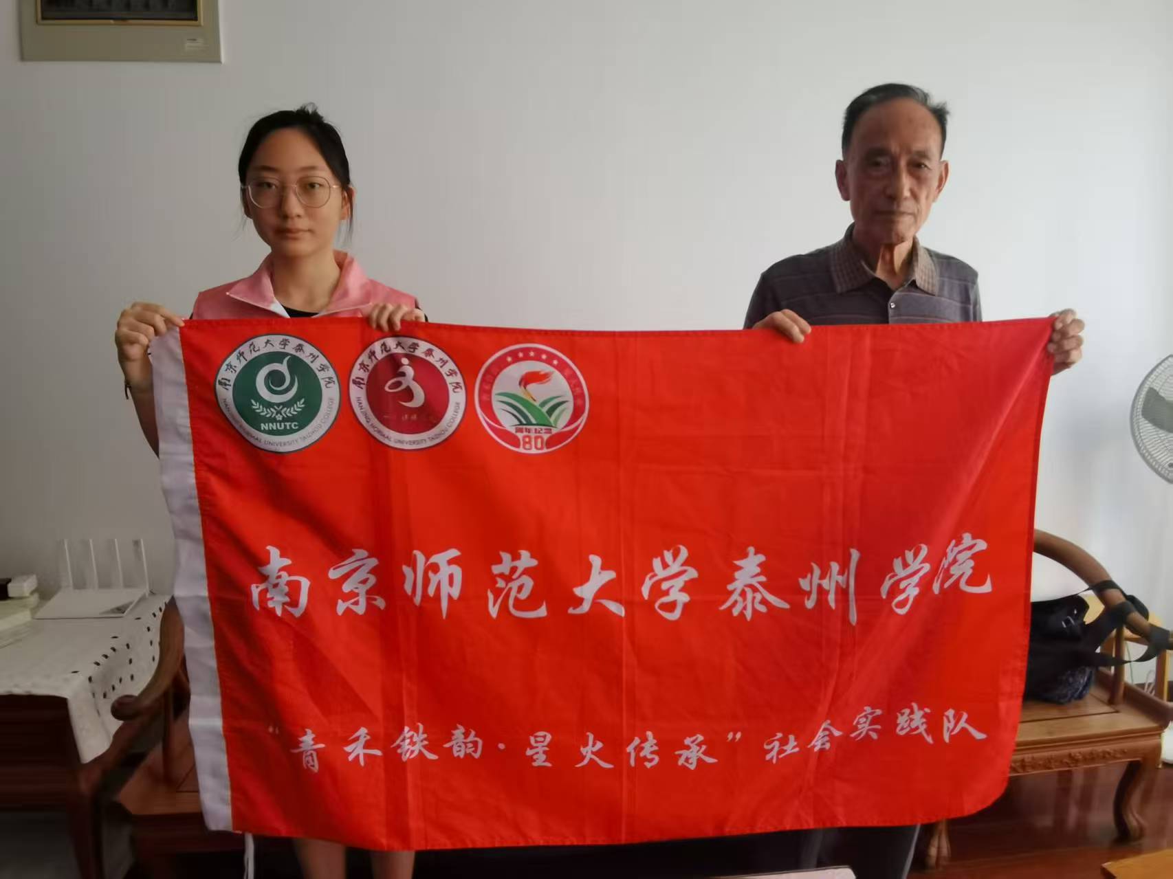 圖為通訊員侍林婧采訪老兵。 張軼聞供圖