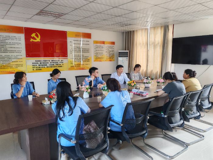 團隊成員和負責人在會議室進行思想交流 隨后,實踐隊走進洛味緣農產品加工企業。企業主營核桃、豆腐干等特色農產品,雖品質優良,但因包裝簡陋、品牌知名度低,市場影響力受限。負責人介紹,2023 年曾嘗試草編筐包裝試銷,因缺乏線上推廣經驗,效果不佳。實踐隊針對性提出 “非遺 + 文化” 包裝升級方案,建議融合草編工藝與倉頡造字元素,并協助拍攝 20 余組產品細節圖,為品牌推廣夯實基礎。