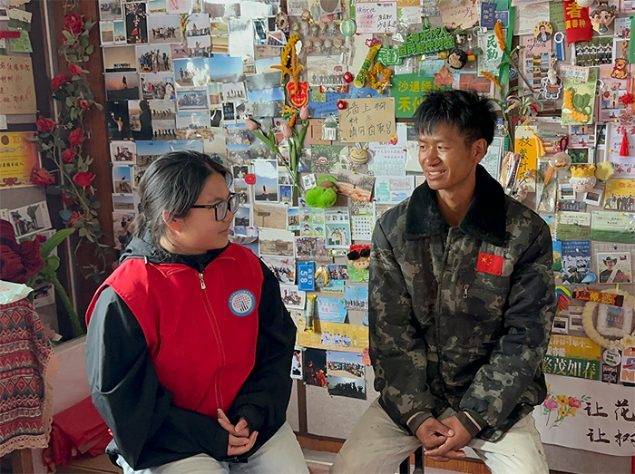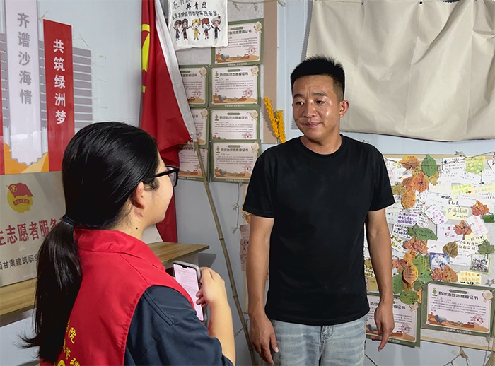 來自云南的小祥哥是基地后勤保障的核心人物,承擔著檢查線路、維修帳篷、安排住宿等維系基地正常運轉的關鍵任務。在一場突如其來的沙塵暴中,他秒變“定樁人”,不顧如注般“潑天”的狂沙,聲嘶力竭地逐一確認帳篷內志愿者的安全。這份守護,源自他對人與土地的深厚情感:他看到老鄉為志愿者遞上熱馕,感受到戈壁般熾熱的情誼;即便記不全每位志愿者的名字,可那份牽掛從未缺席。凝望基地四周漸生的綠意,他深知,這片土地正被無數雙手共同穩穩守護。