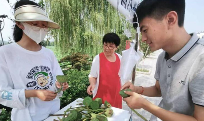 為鼓勵青年學子走進鄉村,實地感受脫貧攻堅成果,助力鄉村振興發展,2023年8月21日-24日,鄉村振興“三下鄉”暑期下鄉團隊葉安鑫、萬文靜、于慧、陳炫竹、滕辰、于文星、馮欣、劉羽翮、顧潘天淏等成員對徐州市鄉村產業發展情況進行專項調研。團隊成員深入徐州市銅山區柳泉鎮北村,通過實地調研、走訪調查、交流學習等方式,全面了解北村通過荷花種植的鄉村產業發展情況。